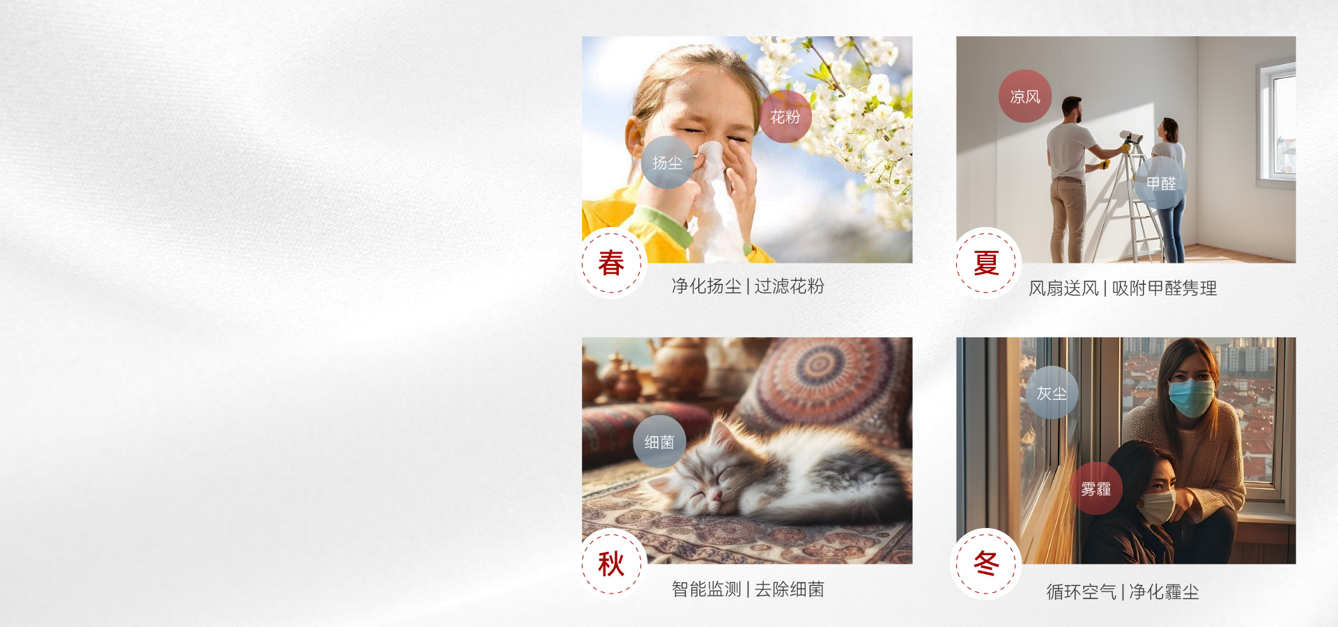 30-55㎡大空间客厅,教室,医院,拥有高效的HEPA滤网和活性碳层,低噪音电机,低功耗设计,节能环保